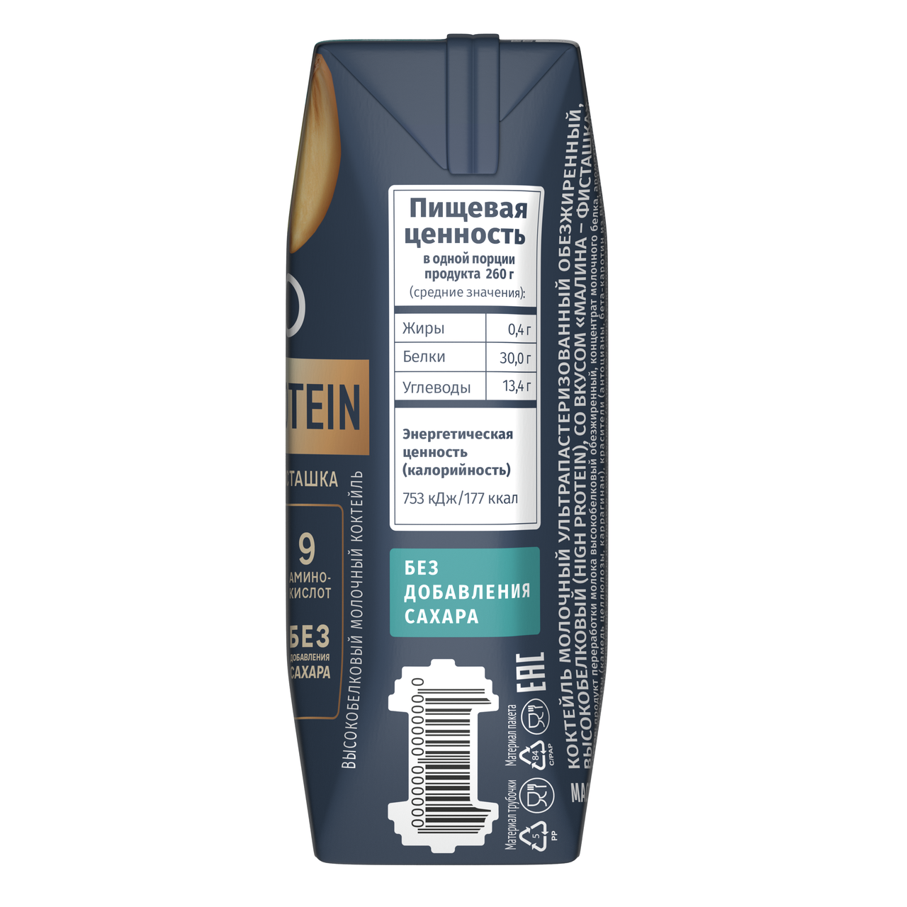 Продукт переработки молока высокобелковый обезжиренный, концентрат молочного белка, ароматизаторы, стабилизаторы (камедь целлюлозы, каррагинан), красители (антоцианы, бета-каротин из Blakeslea trispora), подсластители (цикламовой кислоты натриевая соль, сахарин (натриевая соль), сукралоза).