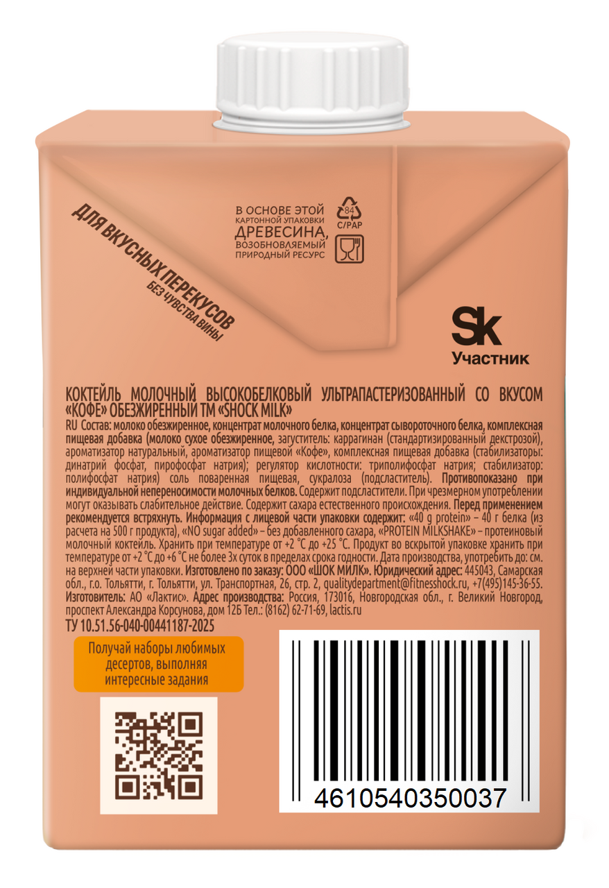 Коктейль молочный Shock Milk Protein обезжиренный кофе, 480мл