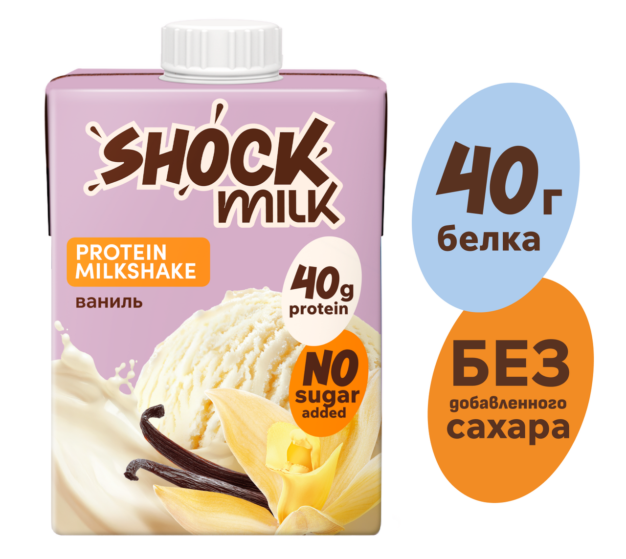 Коктейль молочный Shock Milk Protein обезжиренный ваниль, 480мл