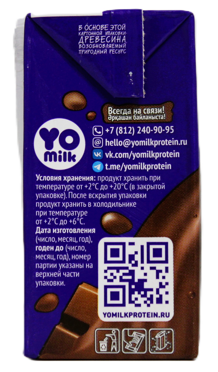 Yomilk Protein Шоколад - это не просто протеиновый коктейль, а полезный молочный напиток, который станет вашей любимой альтернативой сладостям и случайным перекусам. Идеальный напиток без сахара для ежедневного здорового питания. Каждый день нашему организму необходим белок для энергии, восстановления и красоты. Это готовое протеиновое питание в удобной порционной упаковке. В каждой порции содержится 20г полноценного молочного белка (сывороточный + казеиновый) - это питательный белковый коктейль для мышц, кожи и иммунитета. Он может стать полезным перекусом для детей старше 12 лет. Удобно брать с собой. Формат высокобелкового напитка 200мл с трубочкой создан для современной жизни. Yomilk не требует холодильника - берите его с собой куда угодно. На завтрак: как протеиновый напиток для завтрака. Полезный перекус в школу или на прогулку. В путешествие и в дорогу - идеальный питательный напиток для детей и взрослых. На работу, учебу или в спортзал - для восстановления и насыщения надолгo.