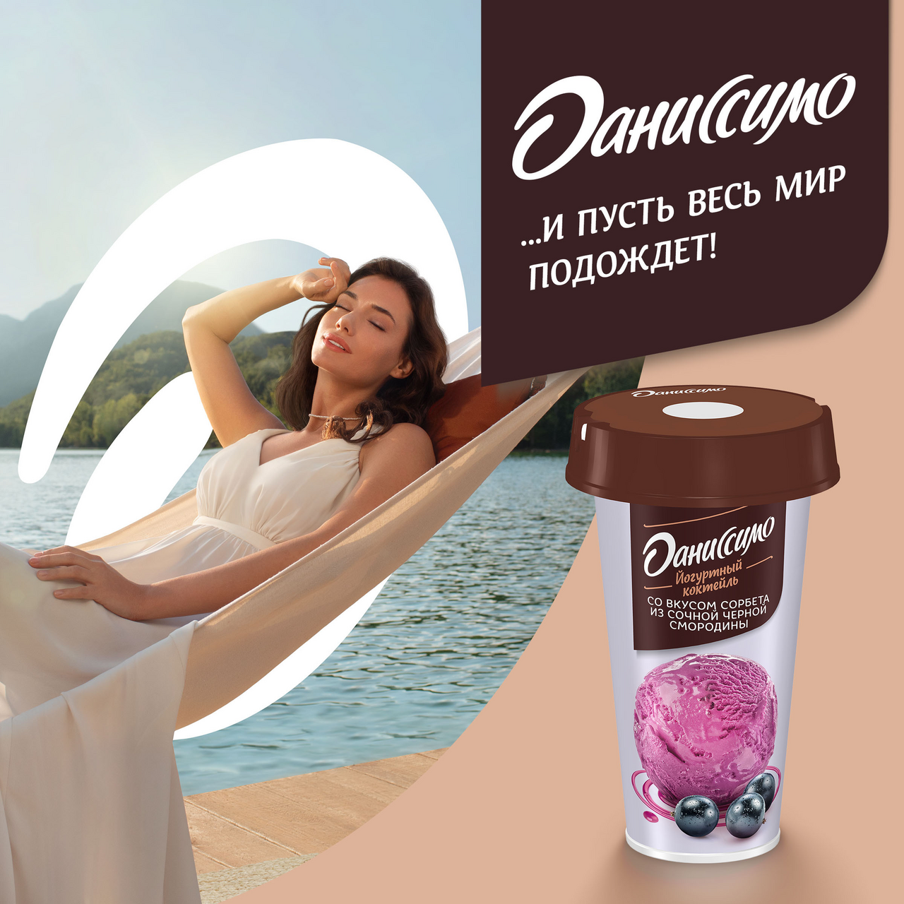 Коктейль йогуртный Даниссимо со вкусом сорбета из черной смородины, 190г