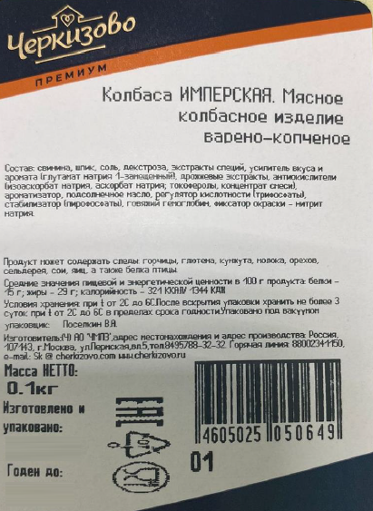 Колбаса Черкизово Имперская варено-копченая, 100г подходит для употребления в качестве самостоятельного блюда, а также для приготовления различных закусок, бутербродов или горячих блюд.