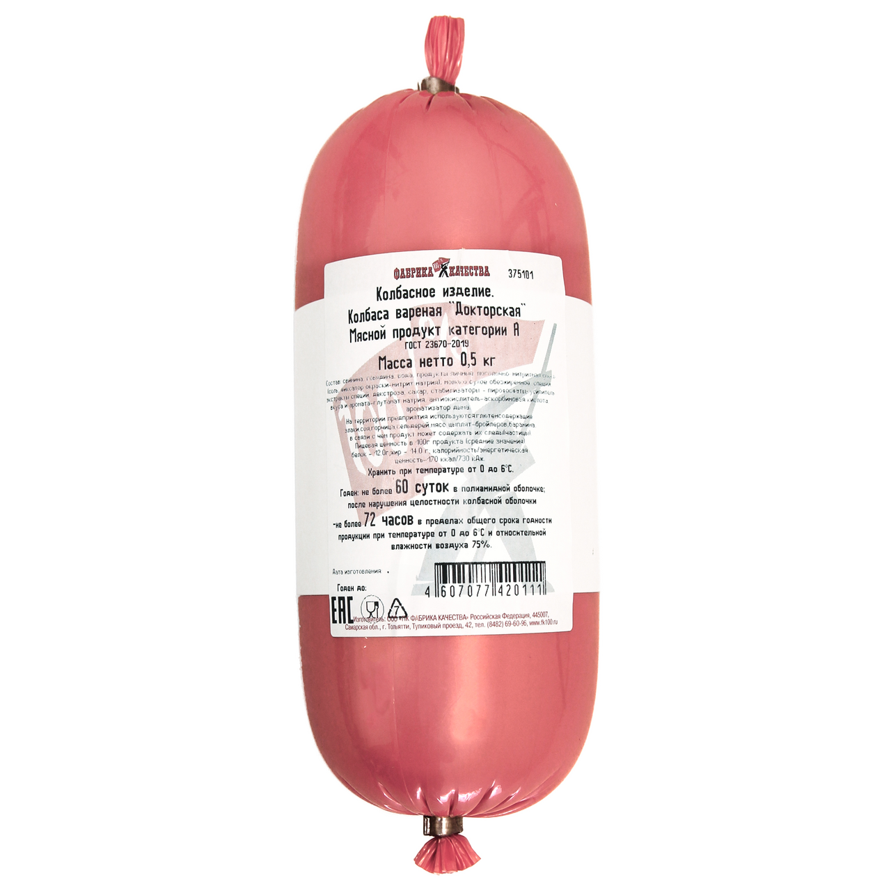 Колбаса докторская Фабрика качества вареная ГОСТ, 500г