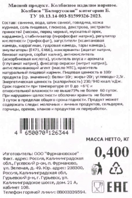Колбаса Dolgovgroup Белорусская вареная, 400г