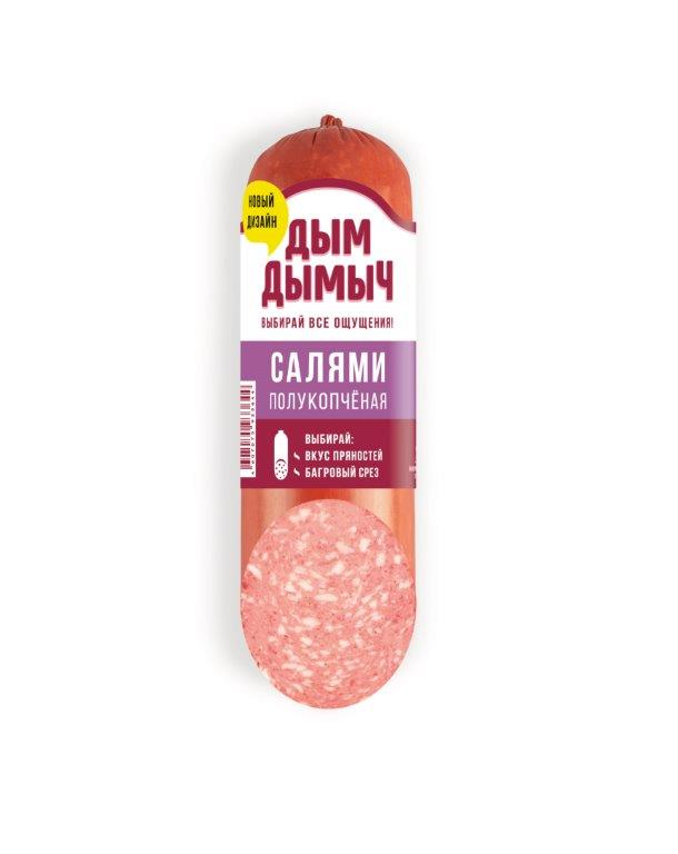 Колбаса полукопченая Салями от бренда Дым Дымыч – традиционный деликатес. Он имеет неповторимый в меру копченый вкус и оригинальный гармоничный цвет на срезе. Деликатес готовится по классической технологии из говядины, свинины и мяса птицы с добавлением шпика.
