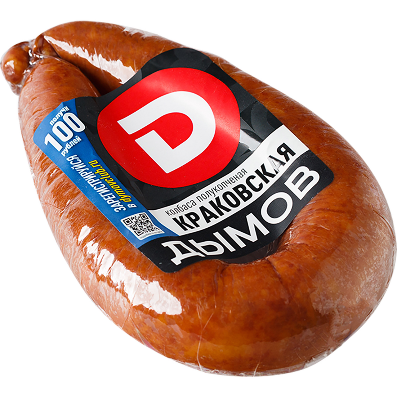 Колбаса полукопченая Дымов Краковская в вакуумной упаковке, 400 г – это вкусный продукт для всей семьи, изготовленный по ГОСТу. Мясная основа такой колбасы отлично подчеркнута особыми специями. Продукт имеет приятный вкус с оттенками чеснока, кориандра, аромат натурального копчения, яркий рисунок среза и небольшое количество шпика в составе. Основу изделия составляют свинина, говядина. Продукт станет хорошим ингредиентом для приготовления различных блюд: бутербродов, салатов, канапе и т.д.