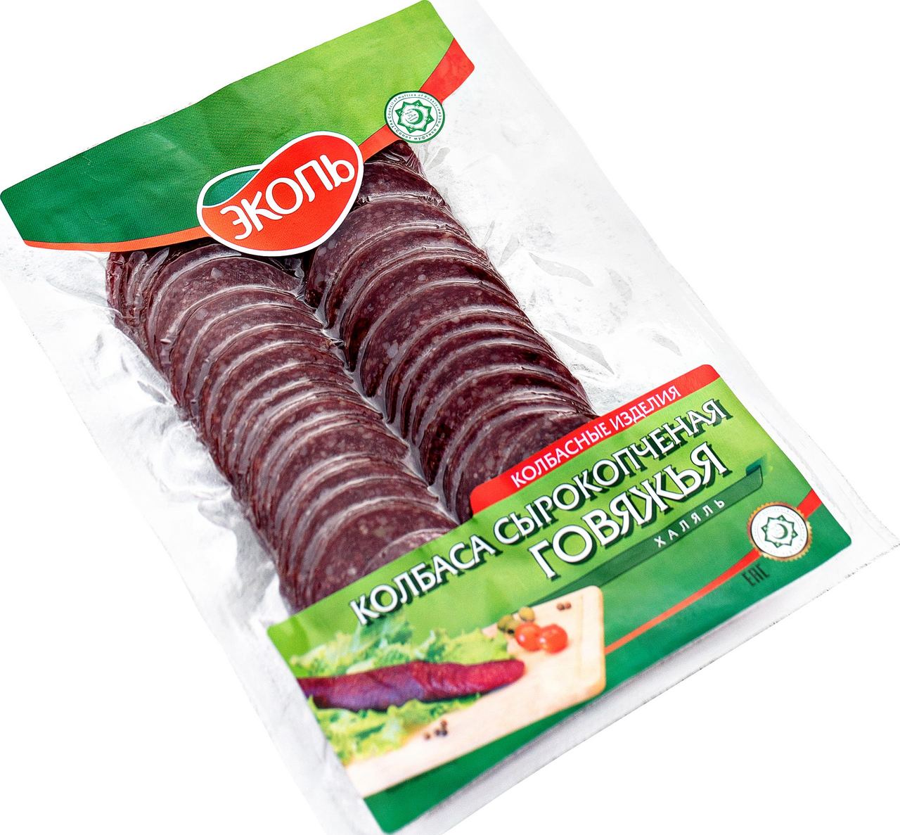 Колбаса Эколь Халяль говяжья сырокопченая нарезка, 150г