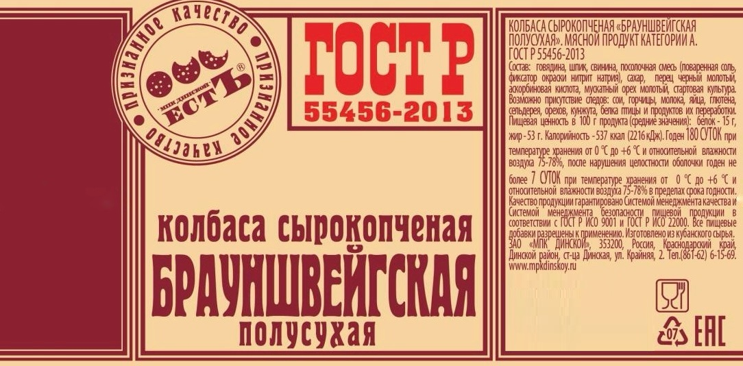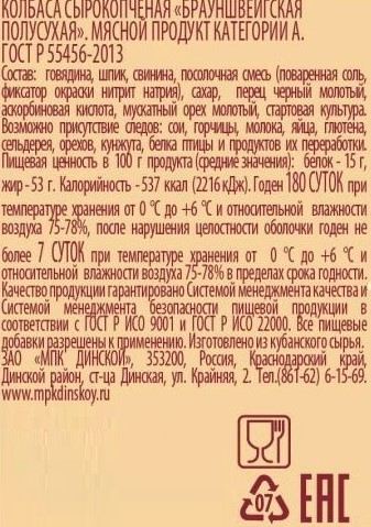 Изготовлена по ГОСТу из отборной говядины и свинины с добавлением натуральных специй: черного перца и мускатного ореха. Изготовленная из отборных ингредиентов, эта колбаса обладает насыщенным вкусом и ароматом, которые не оставят равнодушным даже самого искушённого гурмана. Она идеально подойдёт как для праздничного стола, так и для повседневного употребления.
