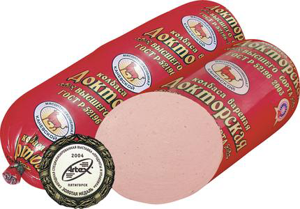 Колбаса докторская вареная высшего сорта готовится по традиционному рецепту с тщательным соблюдением ГОСТ. Этот продукт является незаменимым ингредиентом вкусных и сытных бутербродов, мясных салатов и прочих блюд. Без него невозможно приготовить настоящий и любимый всеми Оливье или Зимний салат.