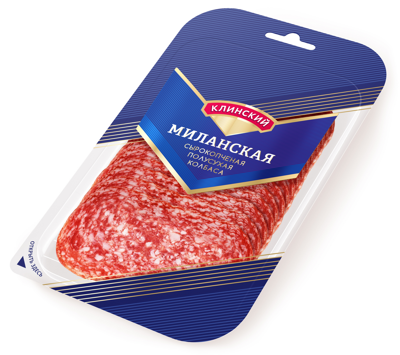 Колбаса изготавливается по авторскому рецепту клинских технологов. В ее составе: говядина высшего сорта, отборная свинина и свиная грудинка с добавлением натуральных итальянских специй, придающих ей потрясающий аромат и вкус. Сырокопченая колбаса, приготовленная из смеси говядины и свинины с добавлением специй. Плотная, темно-красная на срезе с вкраплением мелких кусочков шпика. Отличается пряным вкусом. Станет отличным компонентом аппетитных сэндвичей и сытных солянок.