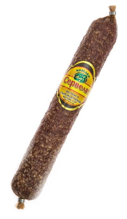 Отличается особым вкусом и притягательным ароматом пряностей и копчения. Производится из высококачественной говядины и свинины с добавлением сухого молока и небольшого количества шпика. Продукт не содержит генно-модифицированных компонентов и вредных добавок. Сервелат имеет прекрасный внешний вид и упругую структуру. Герметичная упаковка сохраняет высокое качество продукта. Идеально подходит для приготовления бутербродов и пиццы. Станет прекрасным украшением праздничного стола.