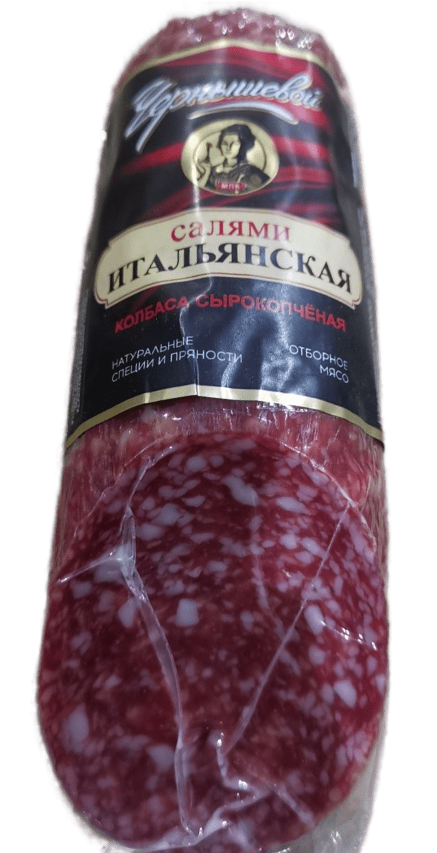 Колбаса МПК Чернышевой итальянская сырокопченая, ~340 г – высококачественный деликатес, полностью готовый к употреблению. Сочная колбаса с богатым, мясным вкусом и насыщенным ароматом. Приготовлен продукт из натурального мяса с добавлением ароматных специй. В продукте остаются все витамины и микроэлементы. Он питательный и полезный, так как усваивается полностью вашим организмом. Насыщая вас прави��ьной энергией, и полезными веществами. Колбаса плотная, но не сухая, имеет красивый, мраморный срез. Отлично нарезается на тонкие, ровные слайсы. Она займет главное место на праздничном столе в виде нарезки. Из нее получатся вкусные бутерброды с белым хлебом и свежими овощами. Аппетитные канапе с черным хлебом и маринованным огурчиком, вкусная закуска под прохладительные напитки.