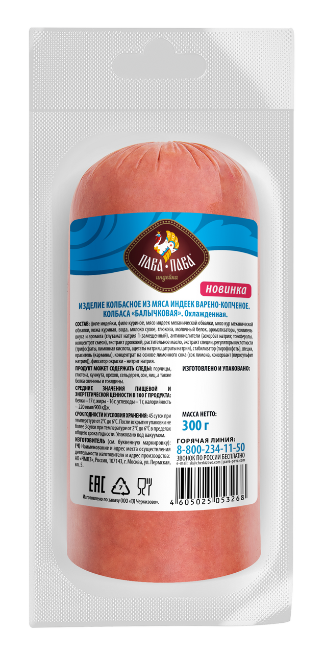 Колбаса Пава Пава Балычковая из индейки варено-копченая, 300г