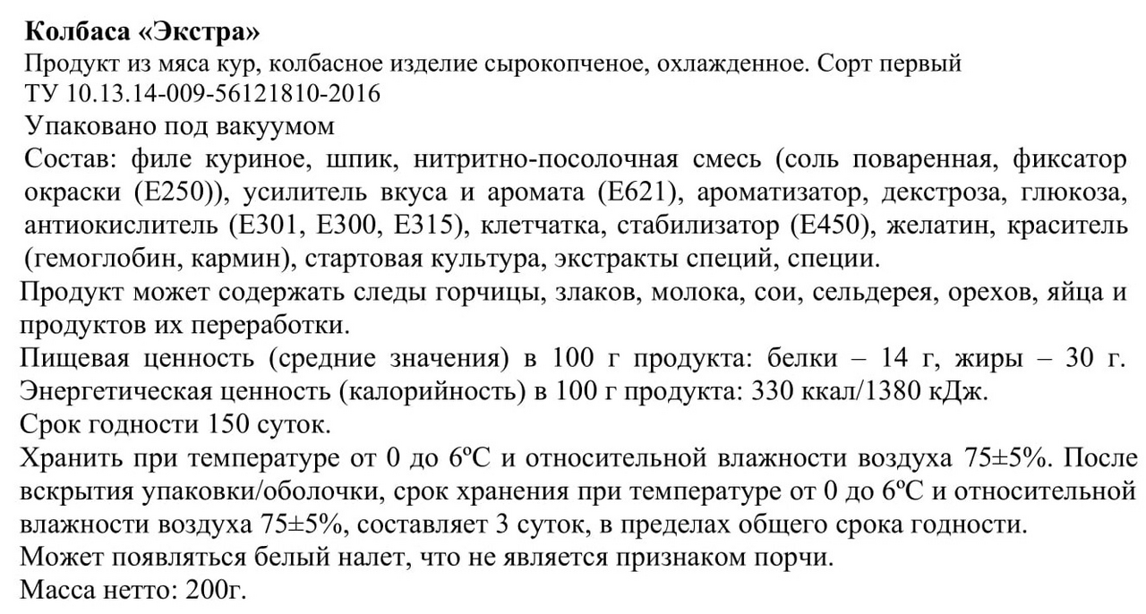 Продукт мясной, сырокопчёный, охлаждённый. Идеально подходит для создания бутербродов и закусок.
