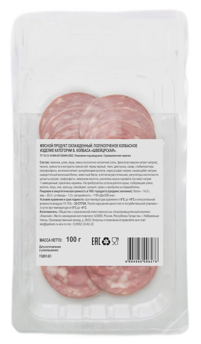 Колбаса Сосновоборская Швейцарская полукопченая нарезка, 100г