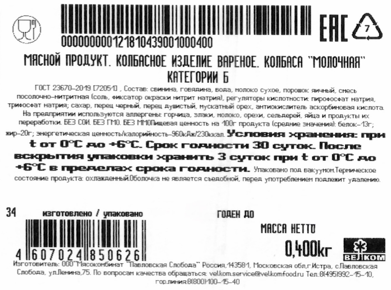 Свинина, говядина, вода, молоко сухое, яйца куриные, соль, регуляторы кислотности пирофосфат натрия, трифосфат натрия, сахар, перец черный, перец душистый, мускатный орех, антиокислитель аскорбиновая кислота, фиксатор окраски нитрит натрия.
