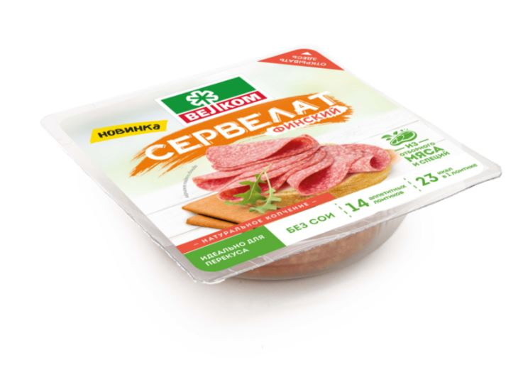 Приготовлена с добавлением мускатного ореха и обладает легким копченым вкусом. Есть ее удобно не только дома, но и во время обеденного перерыва на работе или в дороге. Колбаса в формате нарезки подходит для приготовления сэндвичей, бутербродов, холодных закусок, яичницы и других кулинарных блюд.