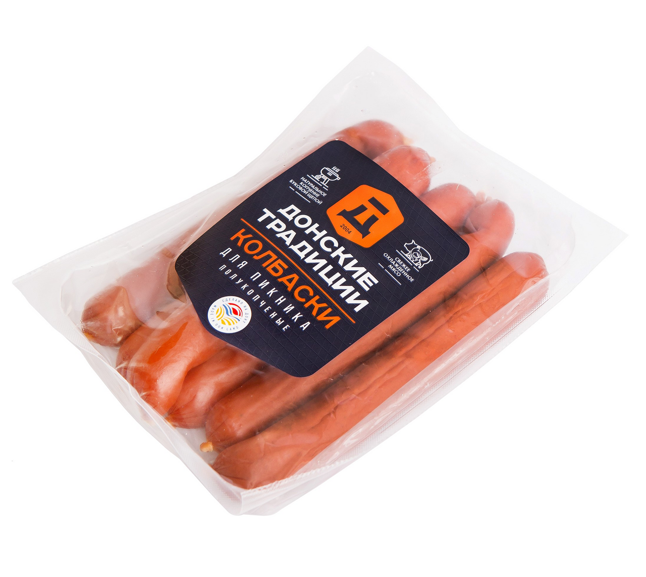 Колбаски Донские традиции Для пикника полукопченые, 400 г – полукопченое изделие, которое станет отличным дополнением как к будничному, так и праздничному столу. Продукт имеет классический вкус. Эти колбаски обладают довольно плотной и упругой консистенцией, а также пряно-соленым вкусом с ароматом копчения. Для их производства используется натуральное мясо с добавлением разнообразных специй. Полукопченые колбаски отлично подходят для приготовления сытных сэндвичей и бутербродов. Также их можно добавлять в выпечку и салаты. Они хорошо сочетаются с овощами, зеленью и сыром. Готовить такой продукт можно как на обычной плите так и на открытом огне – все будет зависеть от ваших предпочтений.