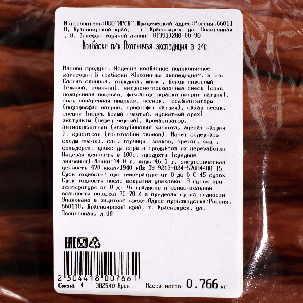 Колбаски Дымов охотничья экспедиция полукопченые, ~800г