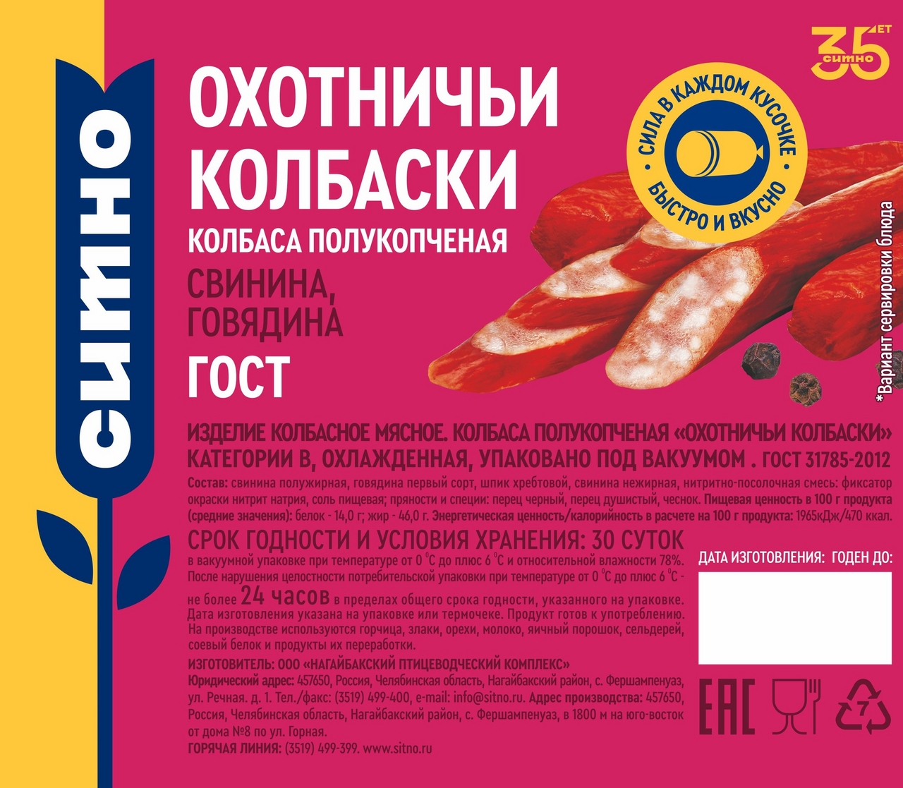 Колбаски Ситно Охотничьи полукопченые, ~500г