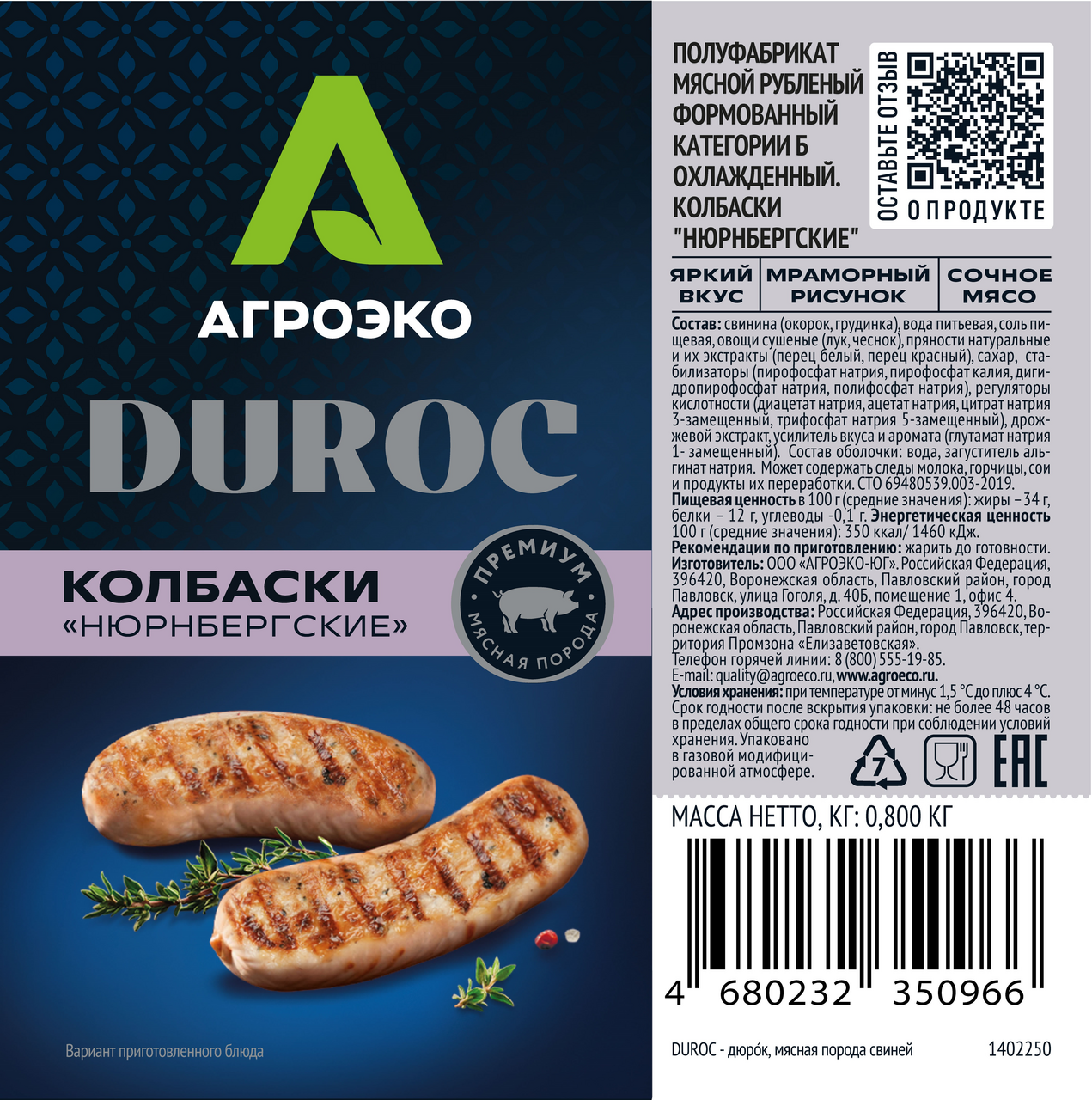 Колбаски свиные АгроЭко Duroc Нюрнбергские охлажденные, 800г