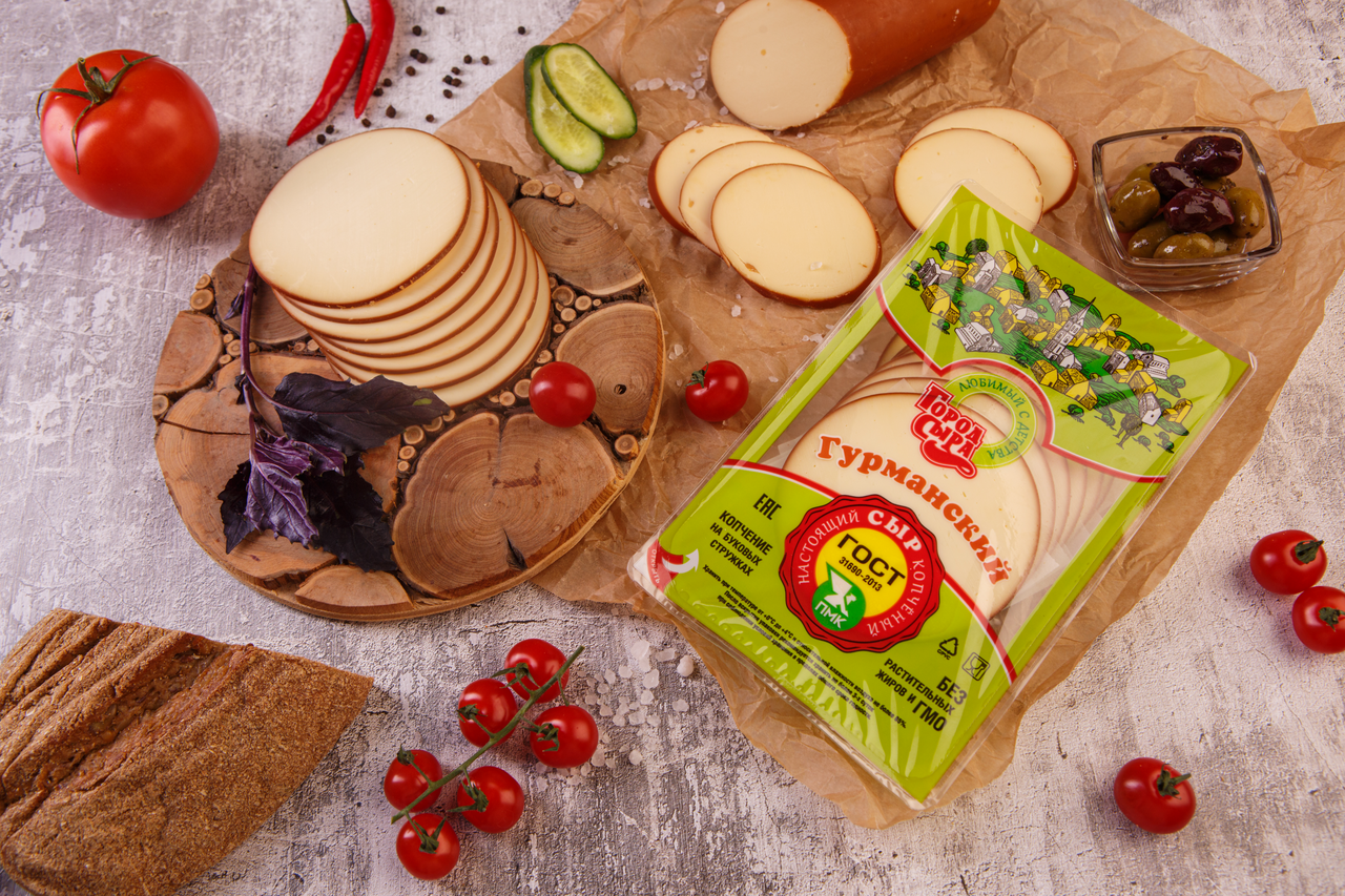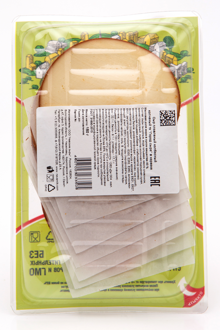 Колбасный сыр торговой марки Город Сыра производится по традиционному рецепту в строгом соответствии с требованиями ГОСТа. Благодаря копчению на буковых стружках продукт обладает приятным сливочным вкусом и характерным ароматом. Сыр идеально подходит для приготовления сэндвичей и горячих бутербродов, а также его добавляют в крем-супы, салаты и закуски. Удобно проложенные пергаментом тонкие ломтики упакованы в газовой модифицированной среде для сохранения пищевых свойств.