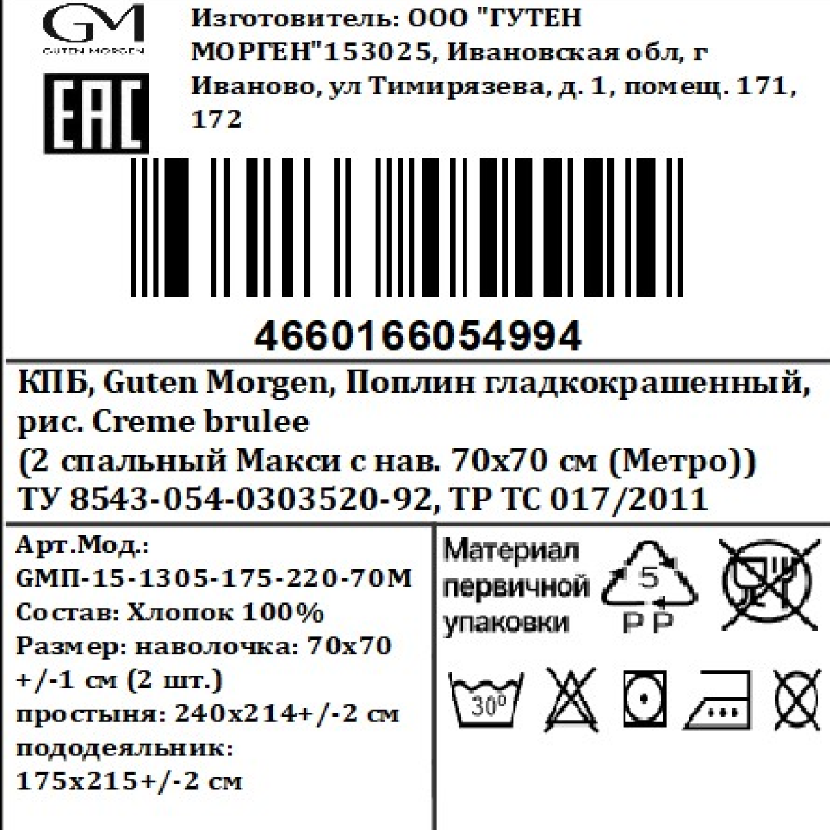Комплект постельного белья Guten Morgen Creme Brulee из поплина двуспальное