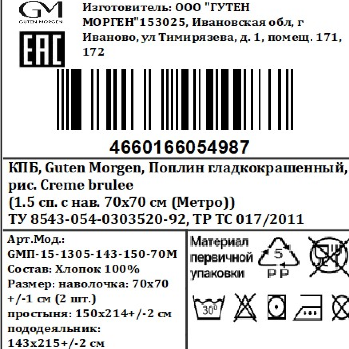 - Размер пододеяльника, см 143 х 215