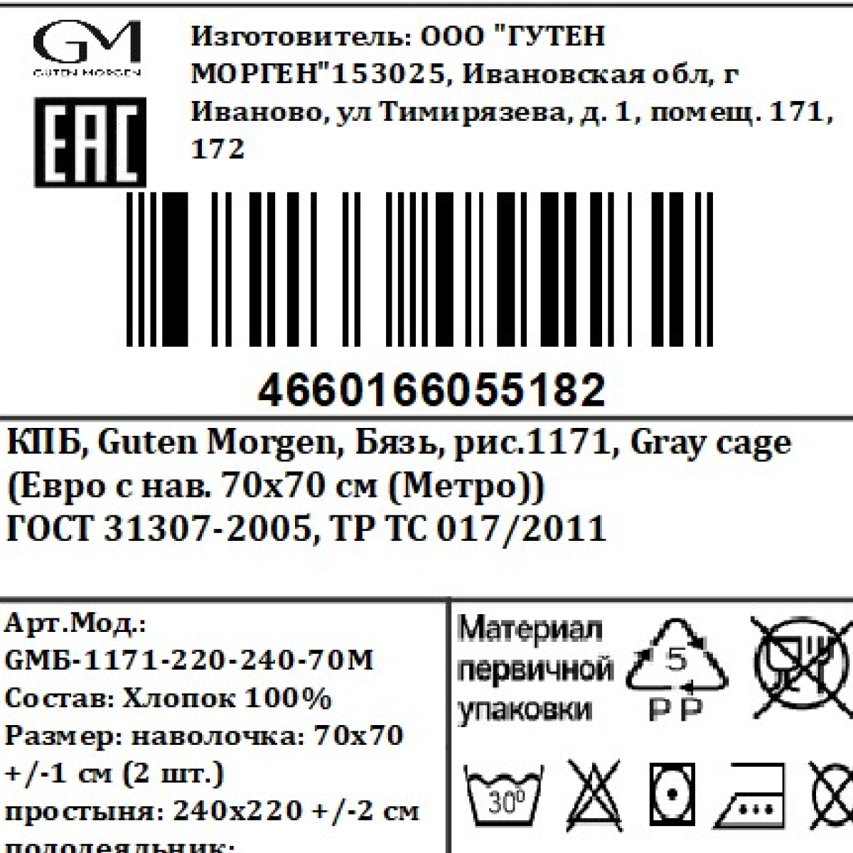 Комплект постельного белья Guten Morgen Grey Cage бязь евро