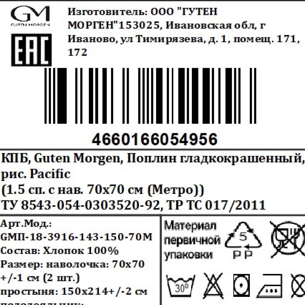 Комплект постельного белья Guten Morgen Pacific из поплина полутораспальное