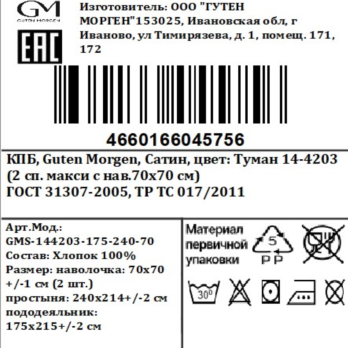 Комплект постельного белья Guten Morgen сатин цвета тумана двуспальное