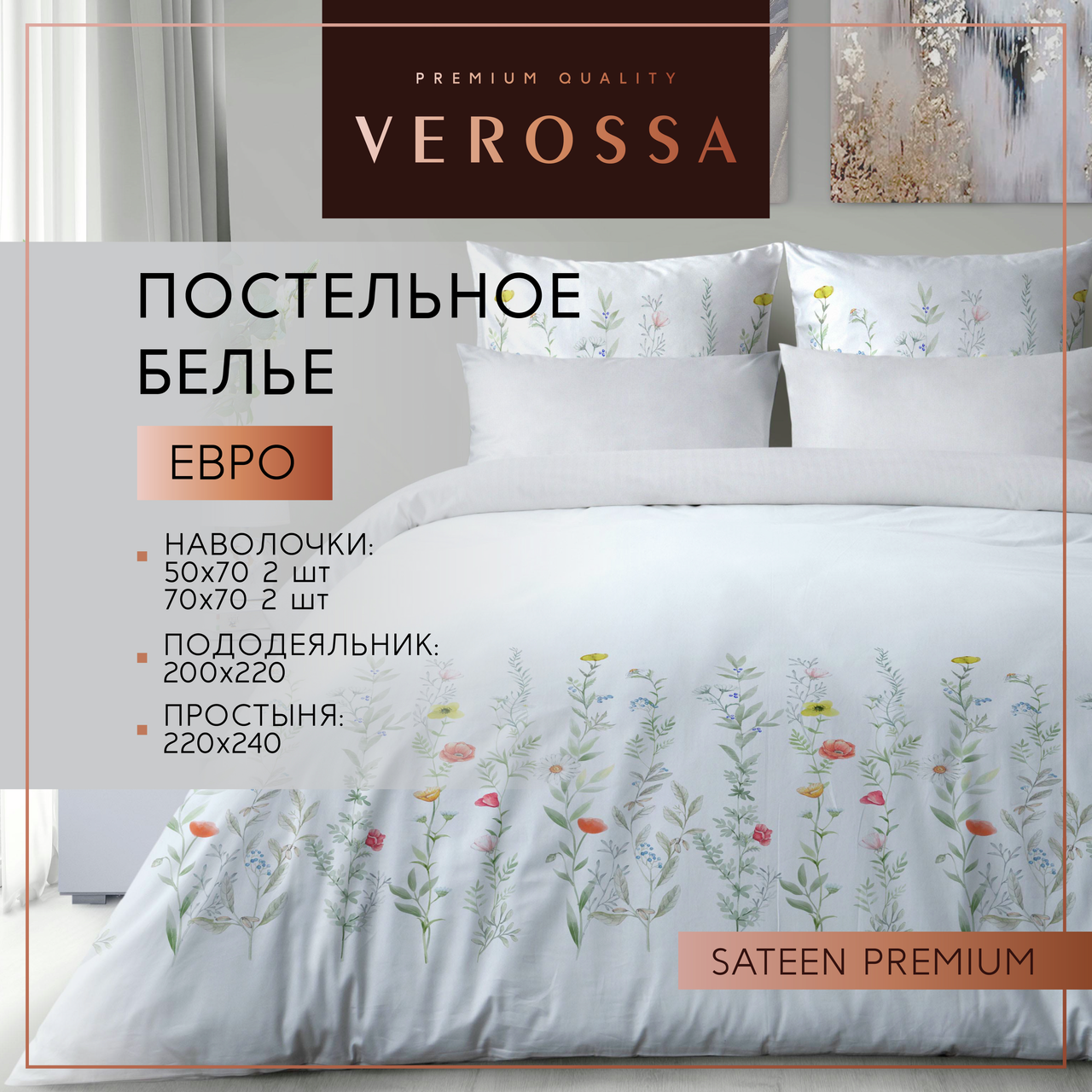 В комплект входят 2 наволочки 50x70см и 70x70см, простыня 220x240см и пододеяльник 200x220см.Обратите внимание, что классический пододеяльник без застежки, а простынь в комплекте без резинки. Высокое качество ткани делает этот набор постельного по-настоящему долговечным. Страйп-сатиновое плетение очень мягкое и приятное на ощупь, а хлопковые нити являются гипоаллергенными и абсолютно безвредны для здоровья. Ткань не подвержена образованию катышков, не электризуется, обладает хорошей воздухопроницаемостью. Таким образом, евро постельное белье Verossa это идеальный выбор для Вашей спальной комнаты, который обеспечит Вам комфортный и безопасный отдых.