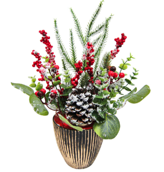 Композиция ChristmasDeLux красно-зеленая, 30см наполнит дом атмосферой уюта и доброго праздника. Это украшение отлично смотрится под новогодней елью, на подоконнике или у камина, а также станет эффектным подарком на Новый год.