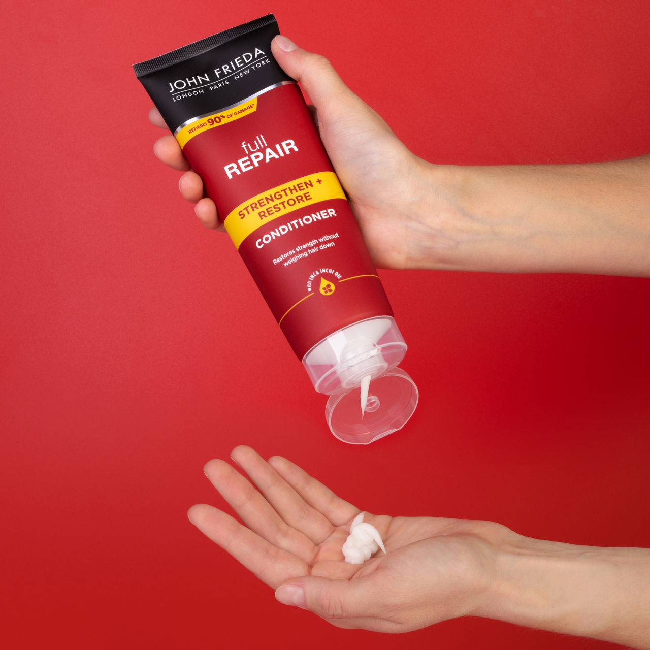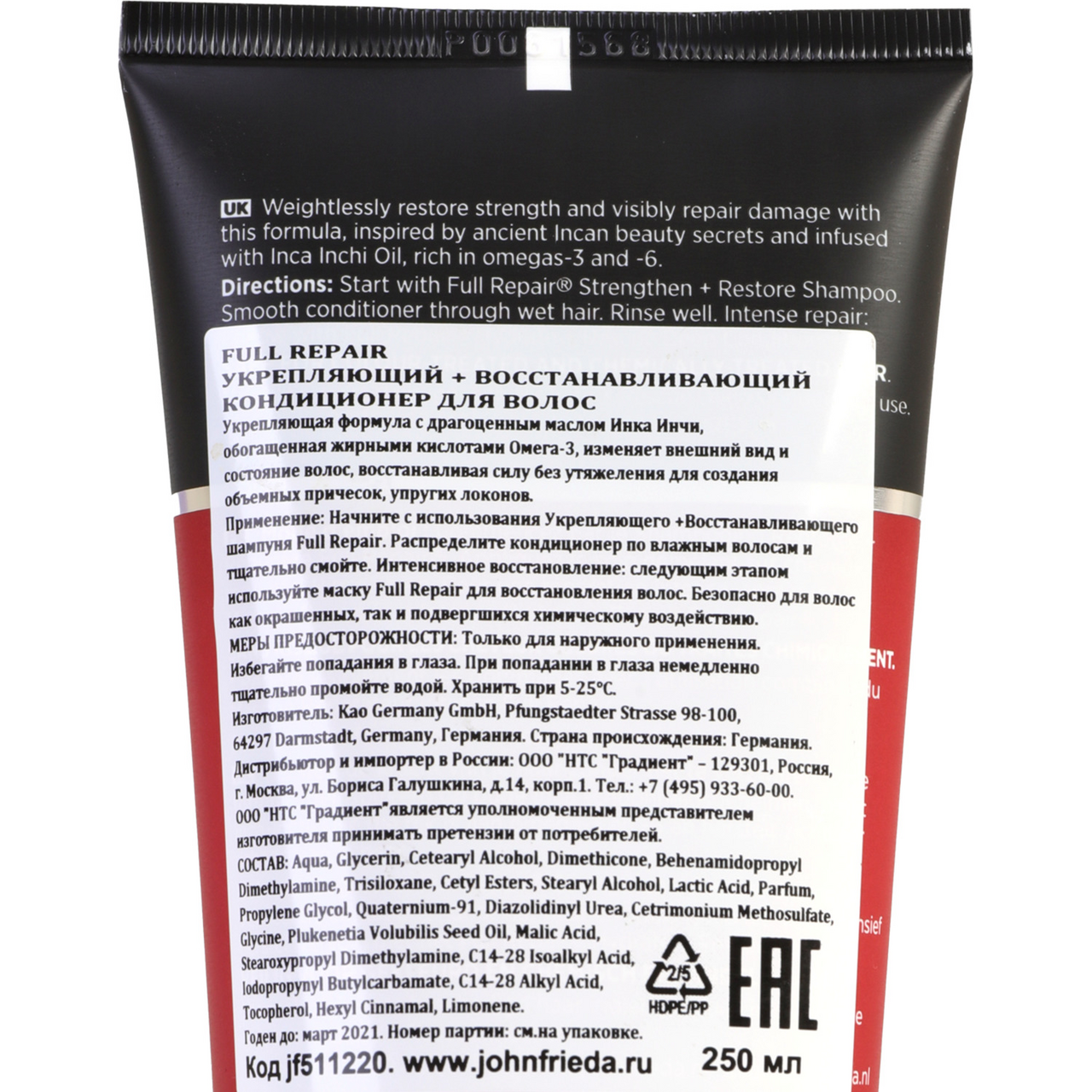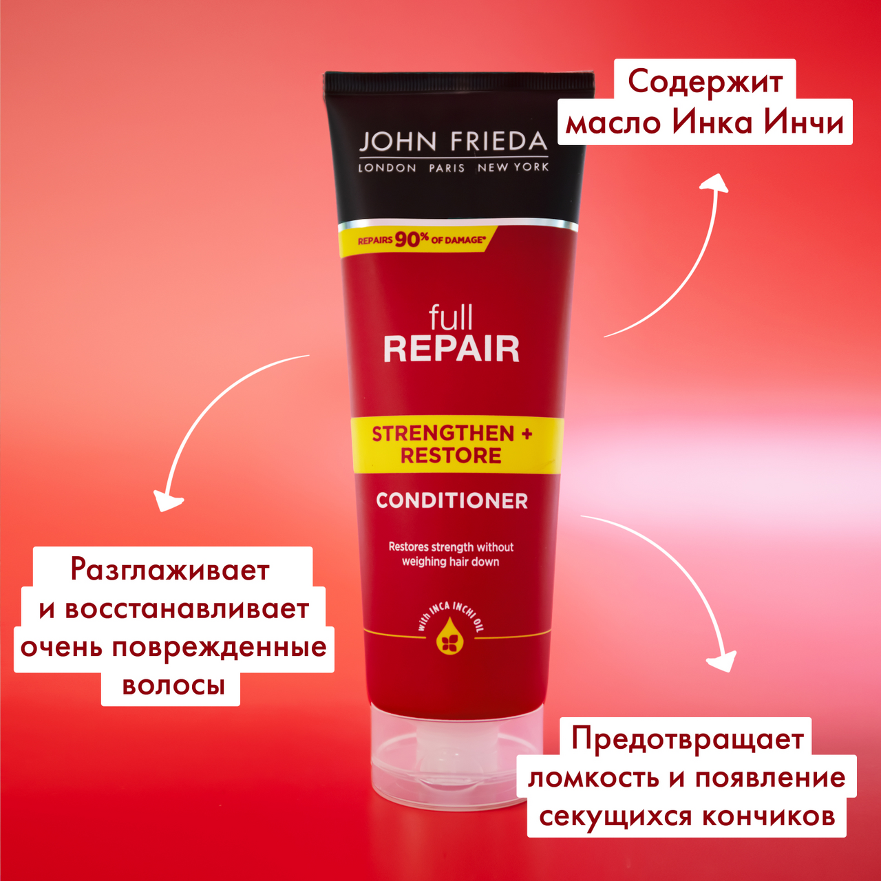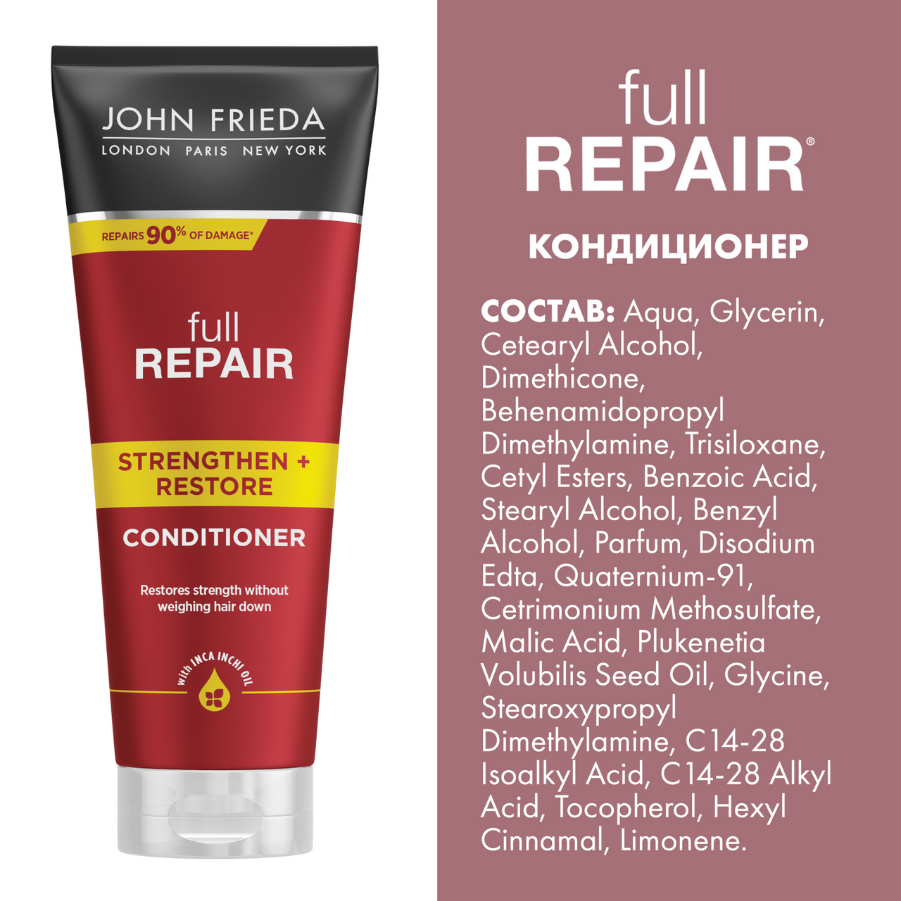 Укрепляющая формула с драгоценным маслом Инка Инчи, обогащенная жирными кислотами Омега-3, изменяет внешний вид и состояние волос, восстанавливая силу без утяжеления для создания объемных причесок, упругих локонов. Применение: Начните с использования Укрепляющего + восстанавливающего шампуня Full Repair. Распределите кондиционер по влажным волосам и тщательно смойте. Интенсивное восстановление: следующим этапом используйте маску Full Repair для восстановления волос. Безопасно для волос как окрашенных, так и подвергшихся химическому воздействию.