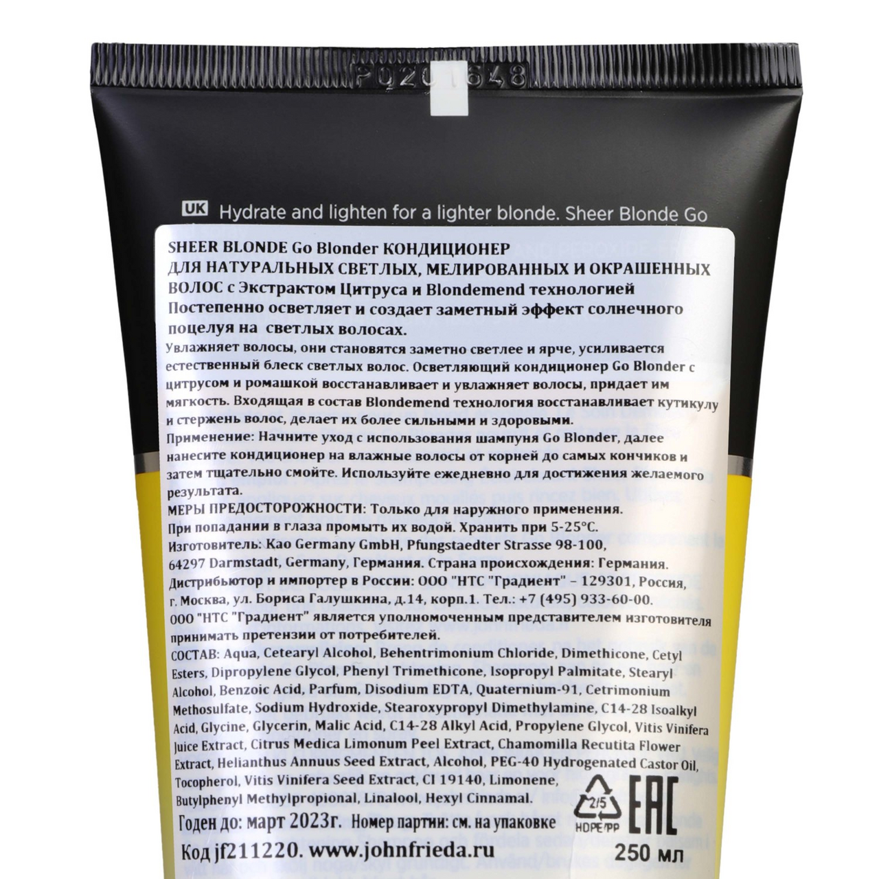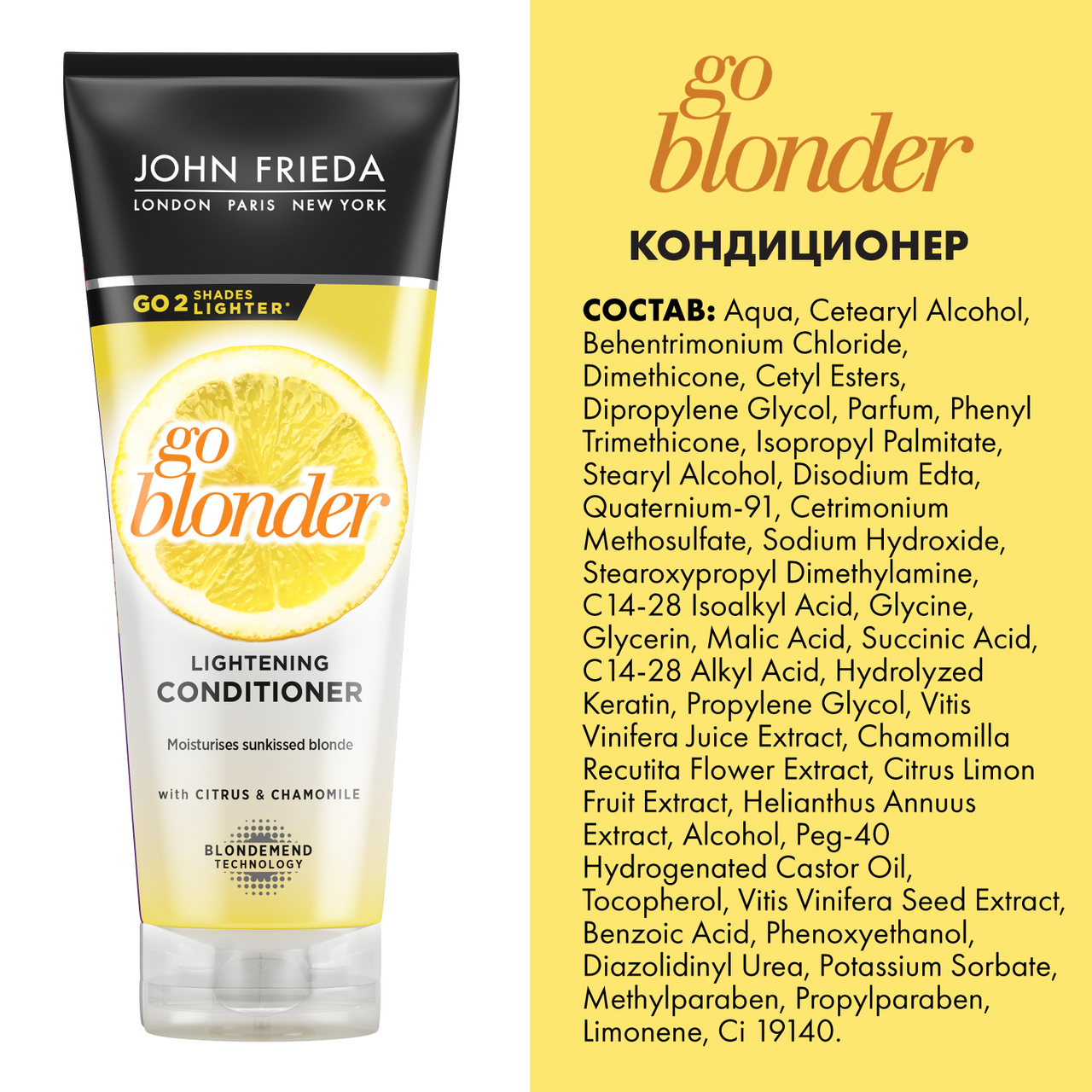 Кондиционер John Frieda Go Blonder осветляющий для натуральных и мелированных волос, 250мл