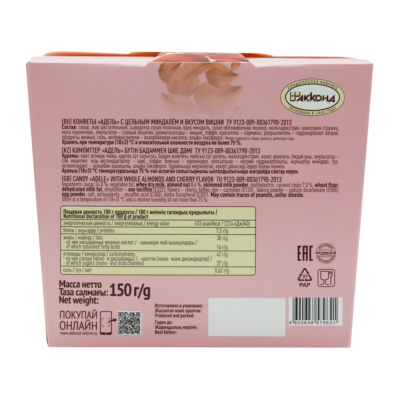 Конфеты Акконд Адель цельный миндаль и вишня, 150г