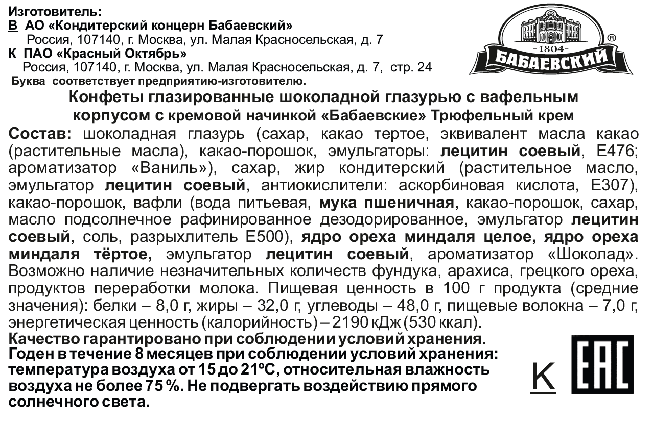 Конфеты Бабаевский с трюфельным кремом