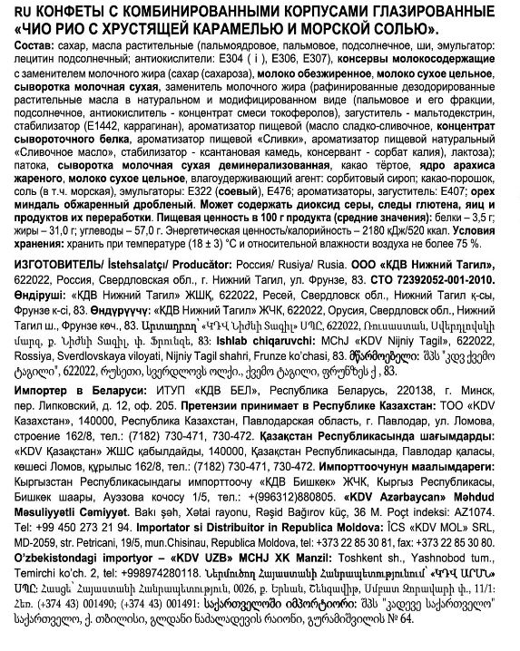 Конфеты Чио Рио с хрустящей карамелью и морской солью, 500г