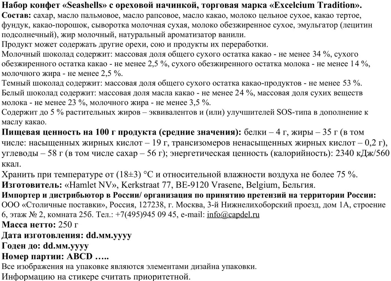 Конфеты Excelcium Tradition Sea Shells шоколадные, 250г