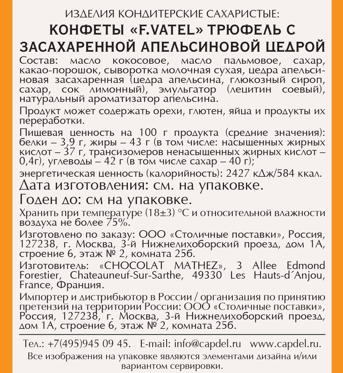 Набор конфет F.Vatel Трюфель с апельсиновой цедрой, 160г