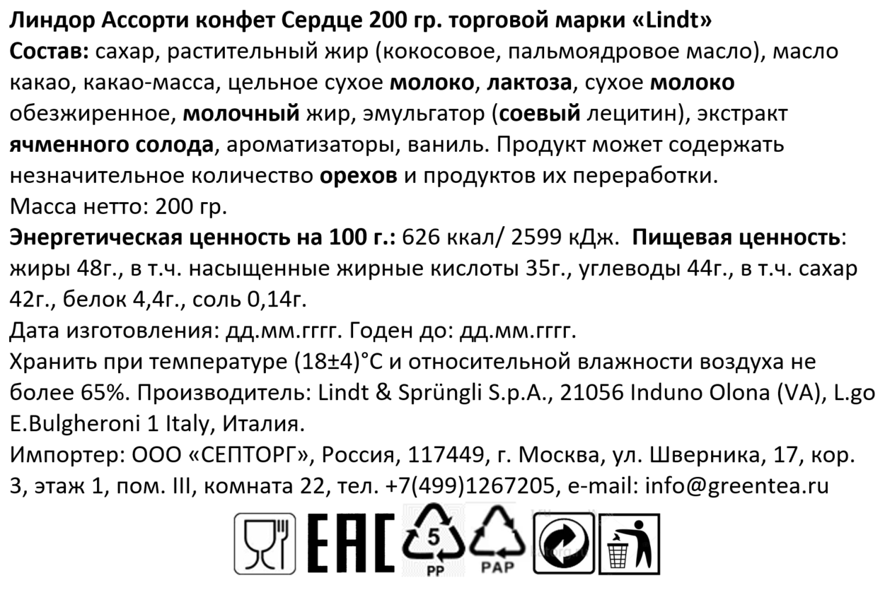Конфеты Lindt Lindor ассорти сердце, 200г