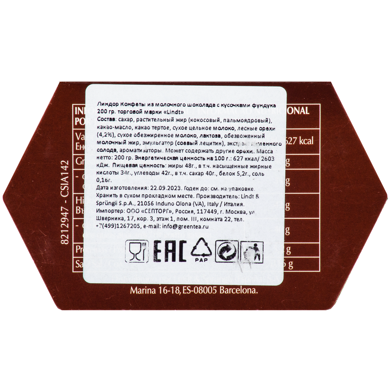 Набор конфет Lindt Lindor с молочным шоколадом и фундуком, 200г