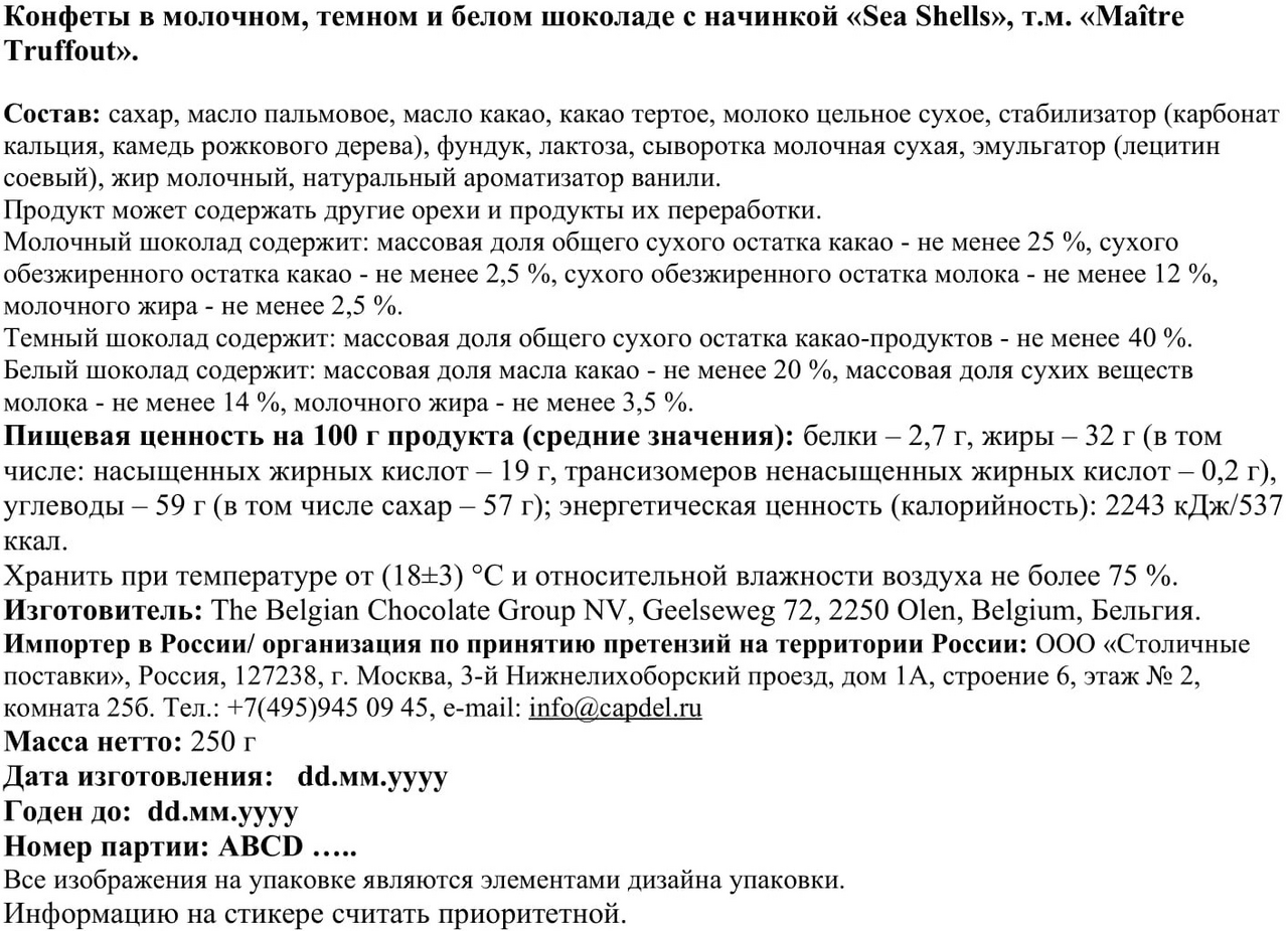 Конфеты Maitre Truffout Sea Shells шоколадные, 250г