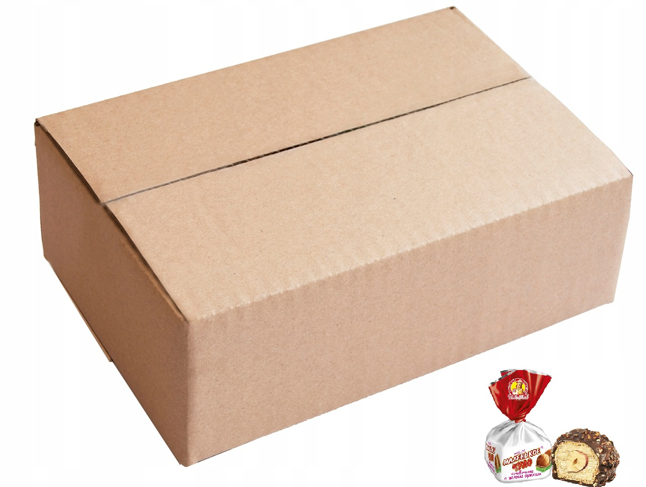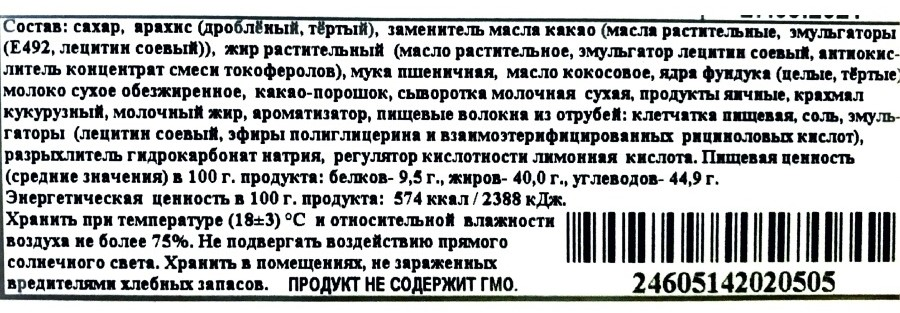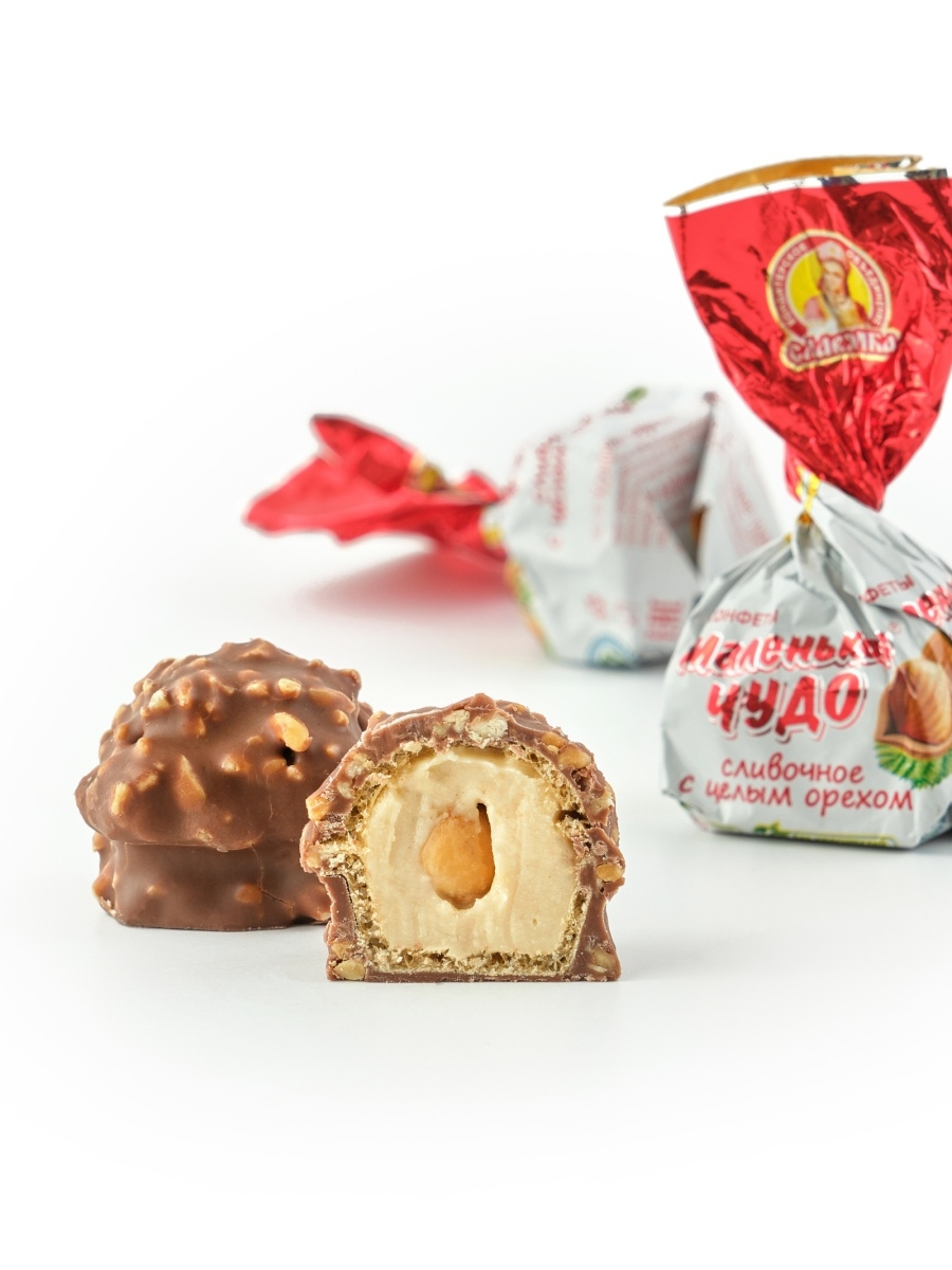Это вафельная конфета с нежнейшей кремовой начинкой, имеет форму пирамиды, обильно политая молочным шоколадом с дроблёным арахисом.