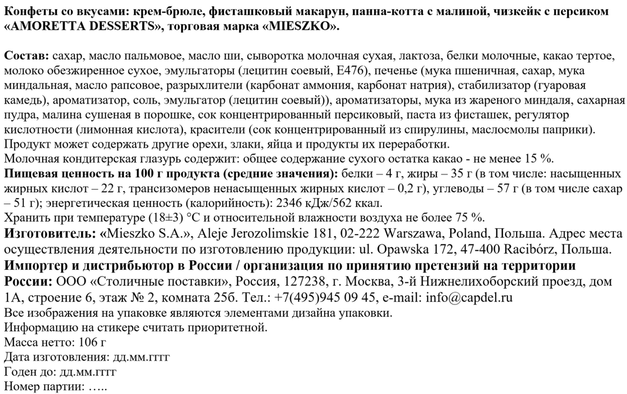 Конфеты Mieszko Amoretta Desserts ассорти, 106г