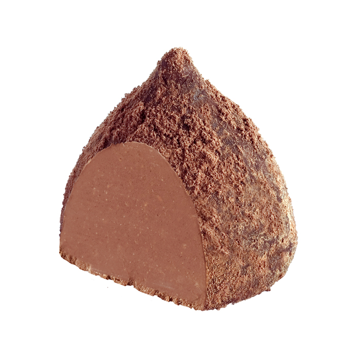 Конфеты неглазированные с корпусом из шоколадно-кремовой массы на основе масла какао, кокосового масла с добавлением сухого цельного молока, какао-порошка Обсыпанные смесью какао-порошка и сахарной пудры.