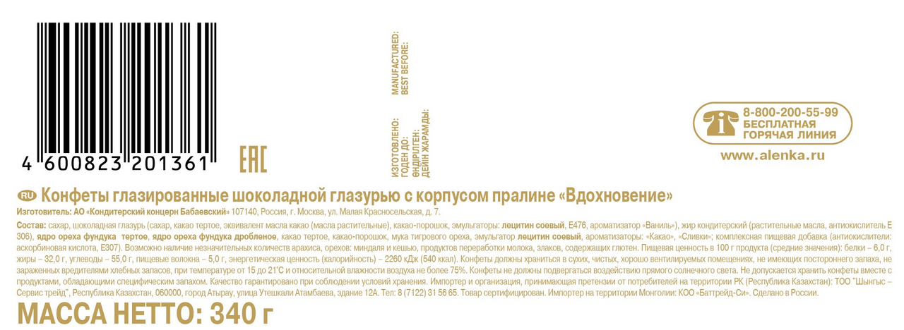 Конфеты Вдохновение с дробленым фундуком, 340г