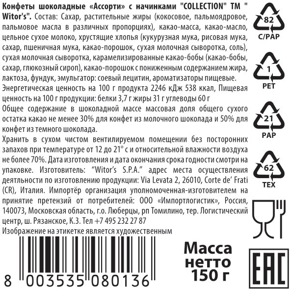 Конфеты Witor's Collection шоколадные ассорти, 150г