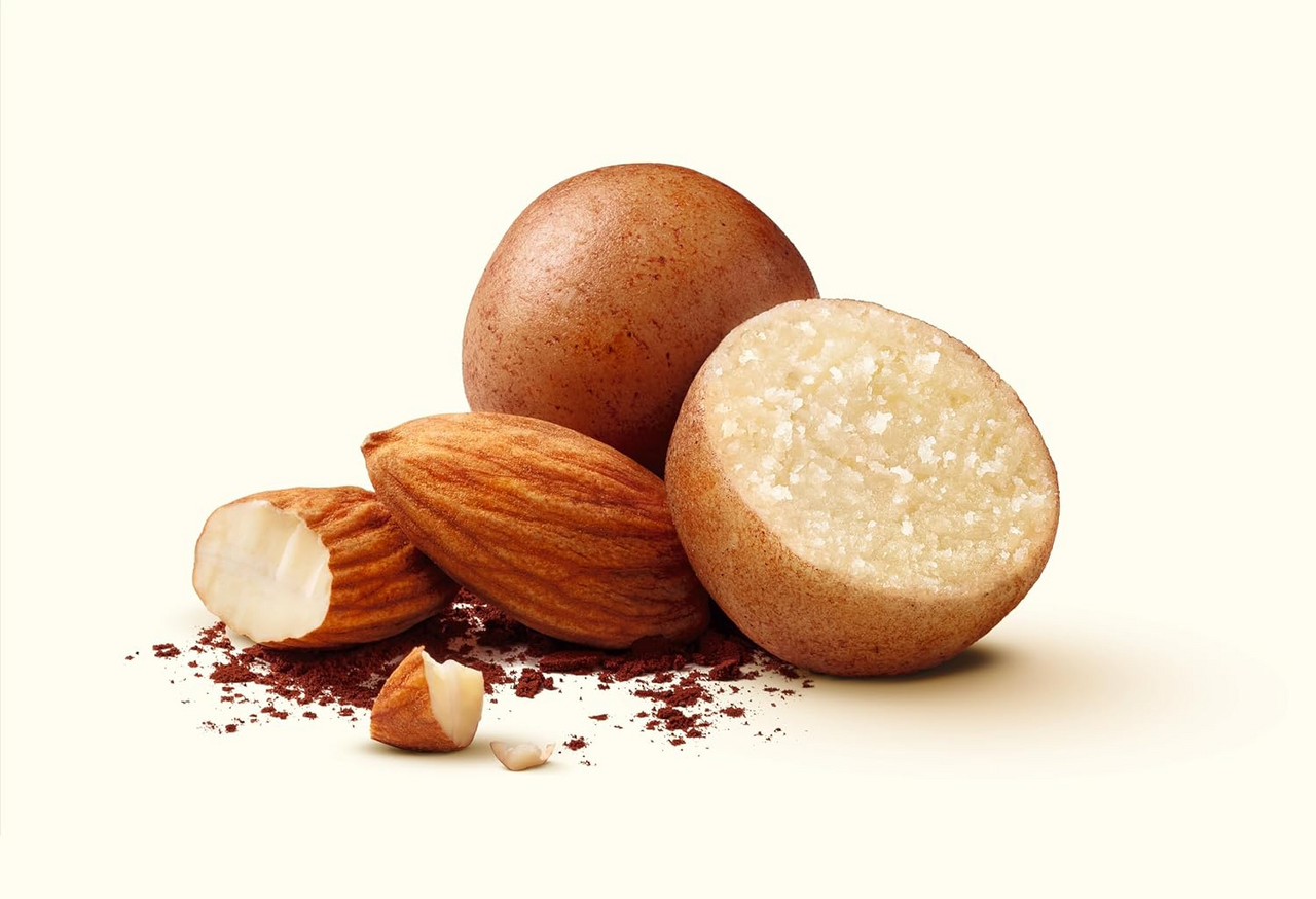 Сахар, миндаль 26%, инвертный сахарный сироп, сироп глюкозы, какао порошок с пониженным содержанием жира, ферментный препарат микробного происхождения инвертаза.