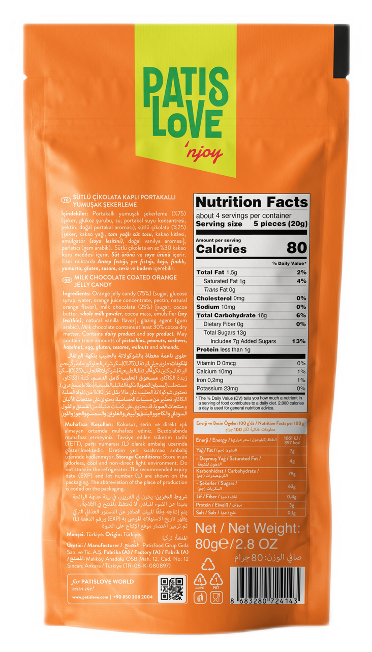 Конфеты желейные Patislove апельсиновые в молочном шоколаде, 80г